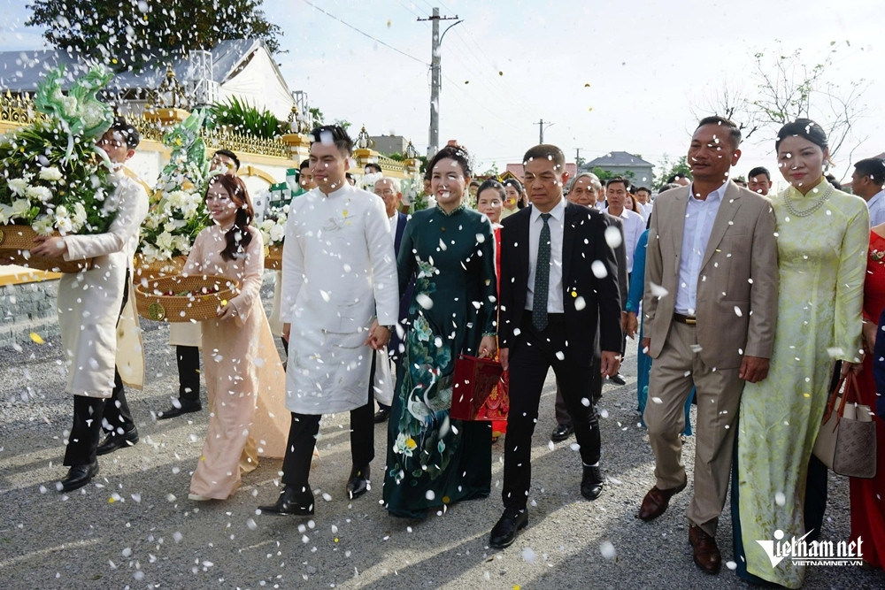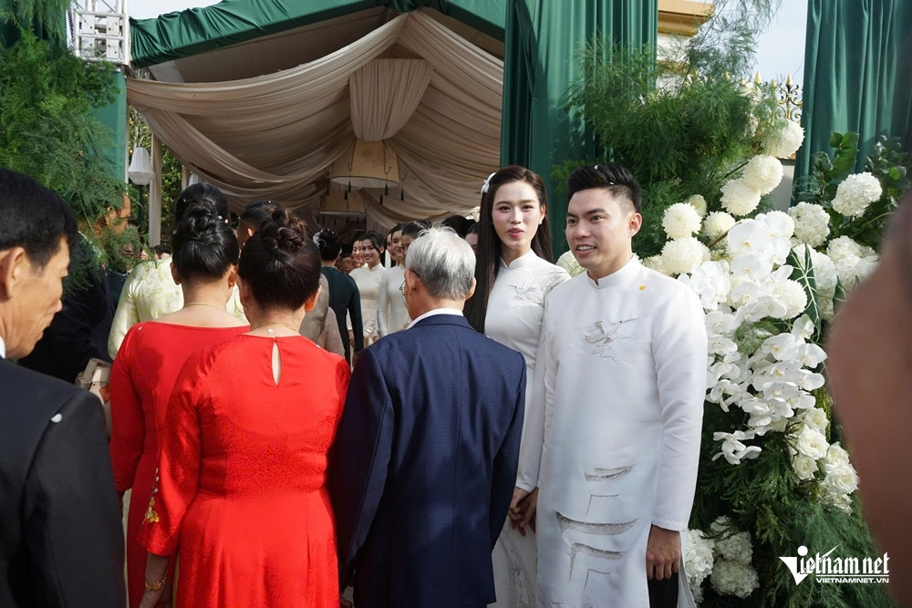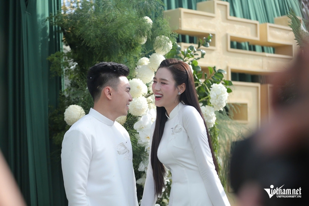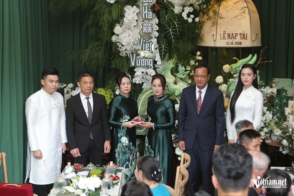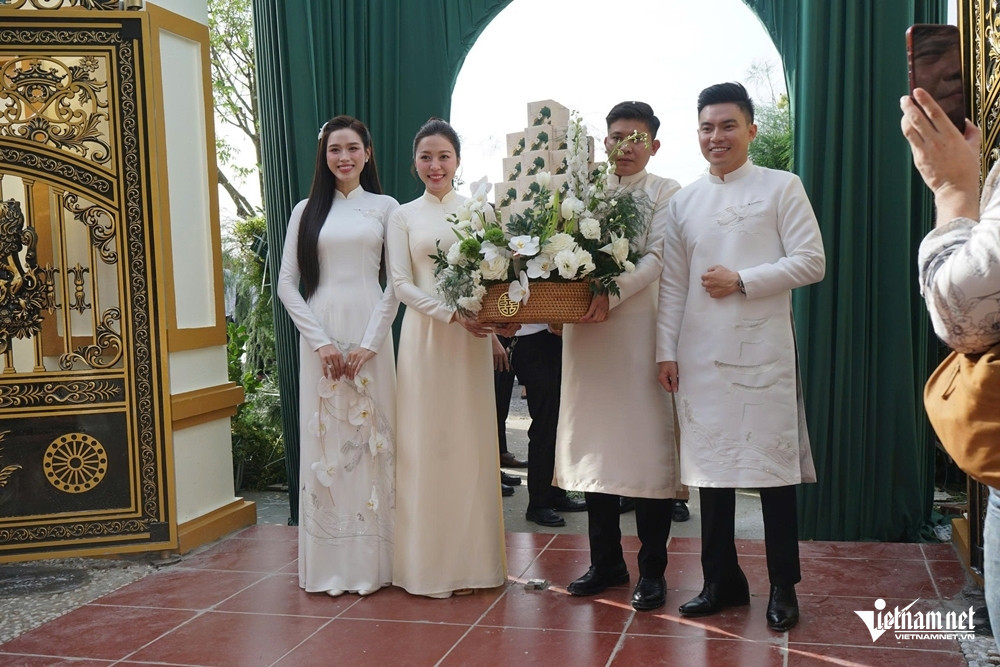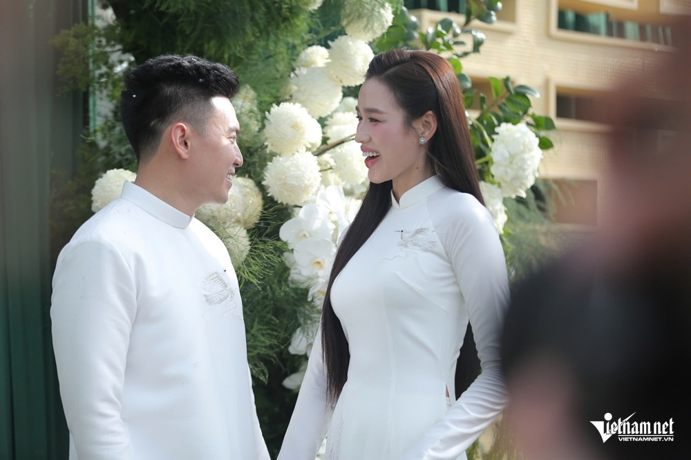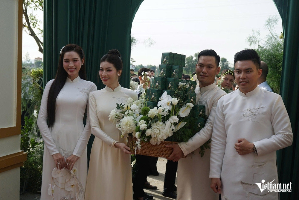 Meo Meo Buổi lễ ăn hỏi của Hoa hậu Đỗ Thị Hà và doanh nhân Nguyễn Viết Vương, Tổng giám đốc Tập đoàn Sơn Hải, diễn ra tại quê nhà Thanh Hóa của cô dâu vào sáng 16/10 trong không gian được trang trí nhẹ nhàng với gam màu trắng và xanh lam ngọc làm chủ đạo.